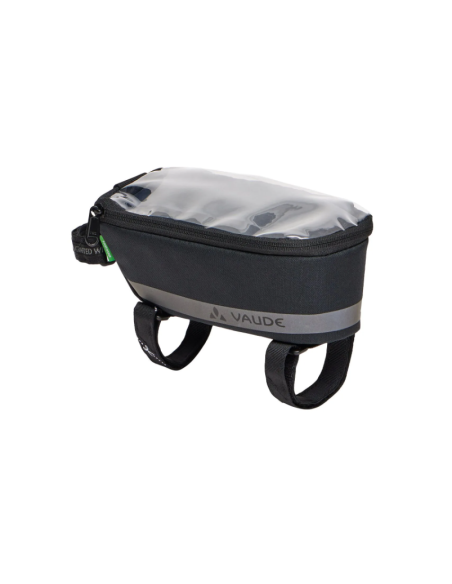 La borsa impermeabile per il tubo superiore è fissata al tubo superiore e al tubo di sterzo con tre cinghie a strappo. I fori nella base consentono anche l'avvitamento opzionale al tubo superiore.