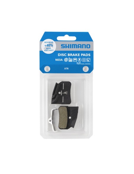 Pastiglie freno Shimano N03A-RF. Compatibile con impianti frenanti Shimano XTR 9120, 8120 e SLX 7120 a 4 pistoncini.RF ha una durata del 50% maggiore rispetto il modello precedente.